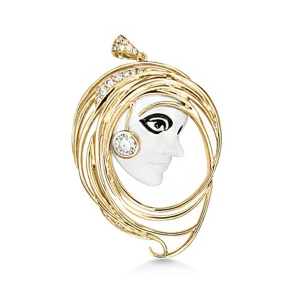 Yellow 14 Karat Yellow free-form Pendant with 0.36Tw Round Brilliant G/H Si2 Diamonds.